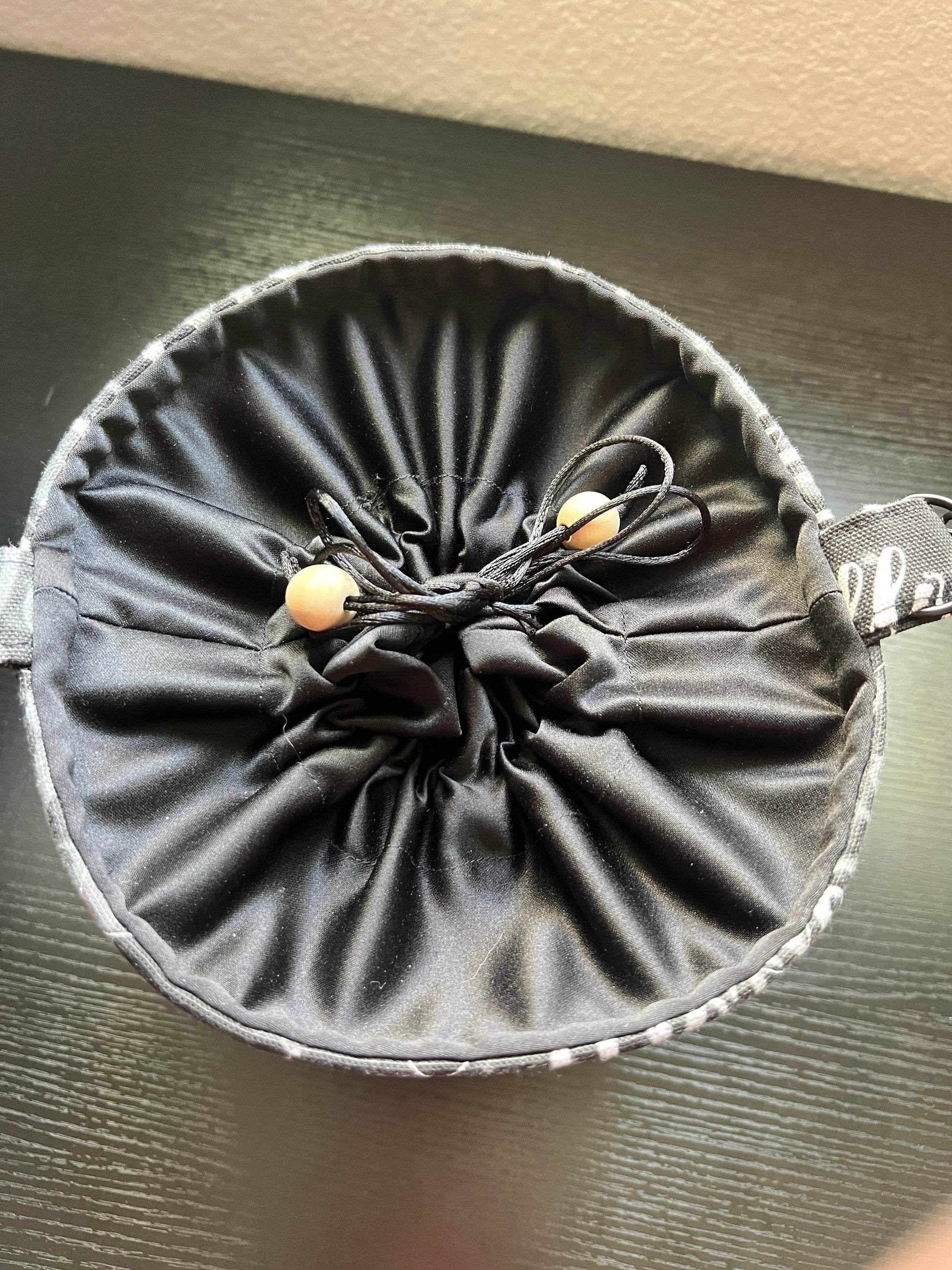 The bag itself is made from cotton canvas and has plenty of room for your things with the bottom circumference measuring at 7 inches, and height at 7 inches.